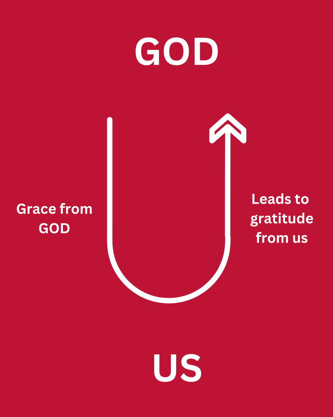 It is stunning in its simplicity: God show graces and this leads to gratitude from us. It is a U curve of grace flowing down to us and us responding.